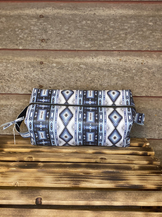 BLUE AZTEC EMBOSSED LEATHER SHAVE KIT