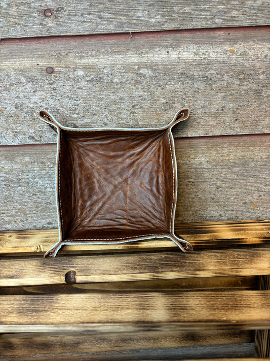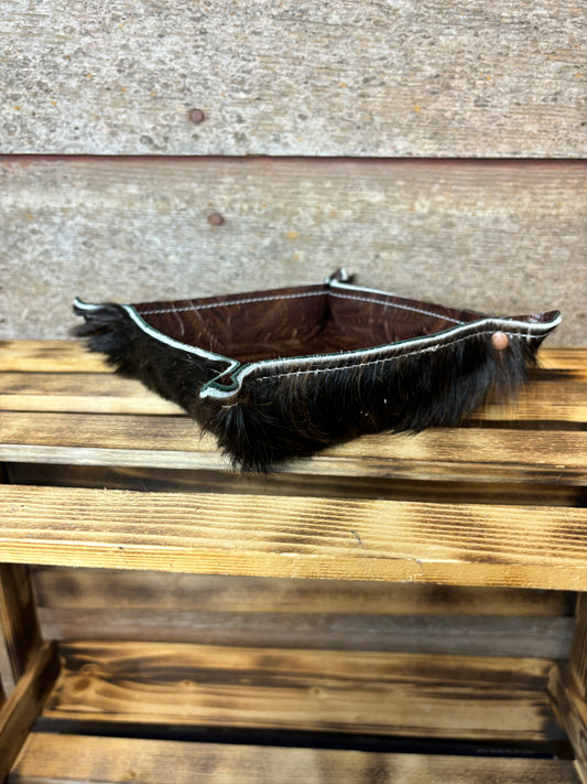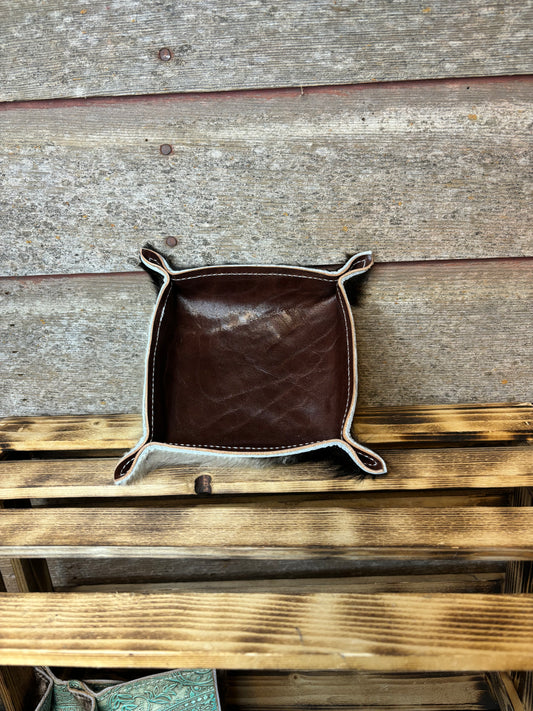 HAIR ON HIDE AND SMOOTH BROWN LEATHER VALET TRAY