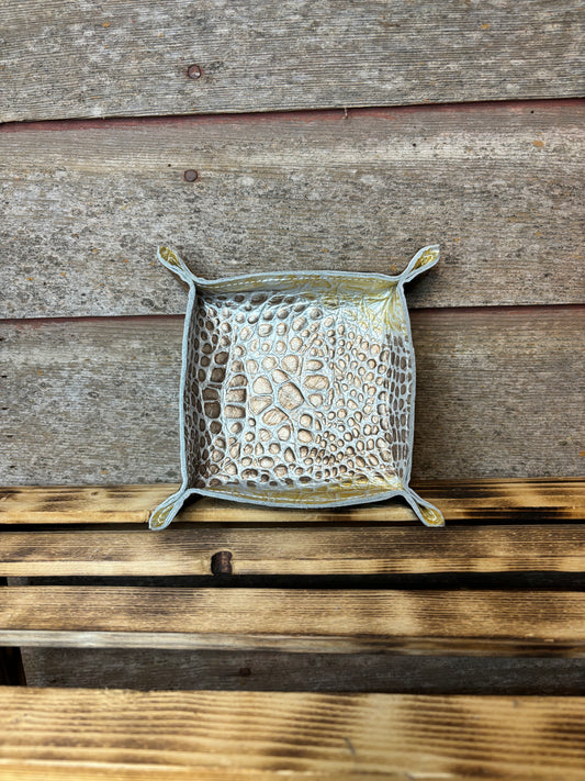 HAIR ON HIDE AND EMBOSSED LEATHER VALET TRAY