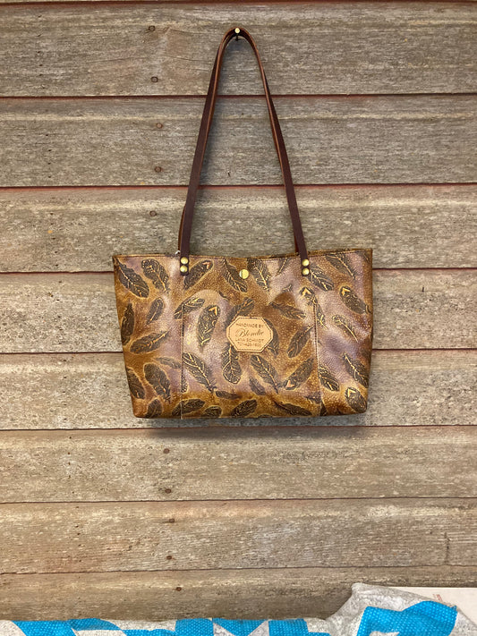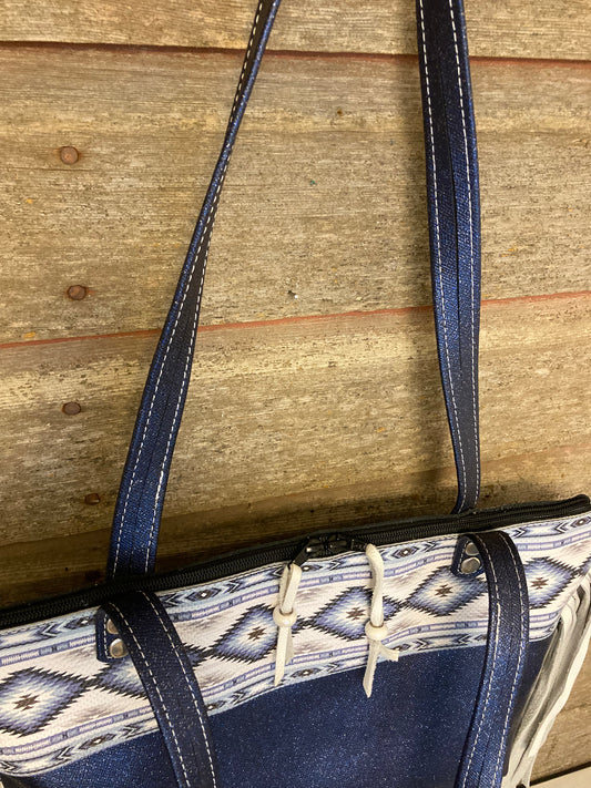 GLITTER BLUE ITALIAN LEATHER TOTE WITH AZTEC TRIM
