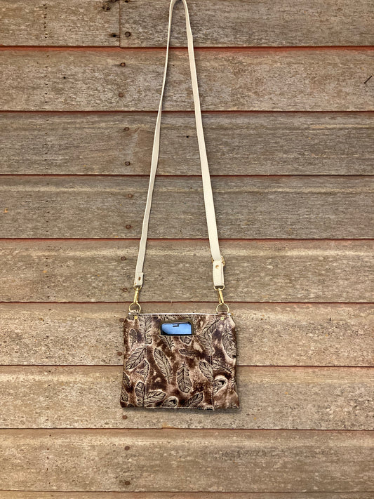 CHOCOLATE & MINT FEATHER EMBOSSED LEATHER LAY FLAT BAG
