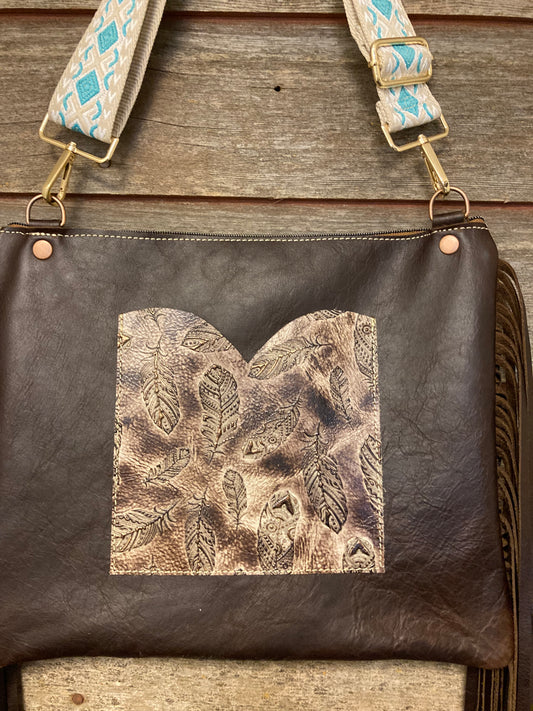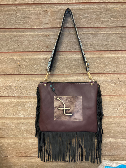 HAIR ON HIDE CROSSBODY WESTERN PURSE WITH TWO SIDED CHOCOLATE FRINGE