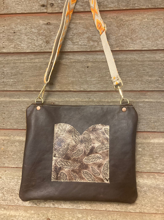 TEAL & BURNT ORANGE EMBOSSED LEATHER LAY FLAT BAG